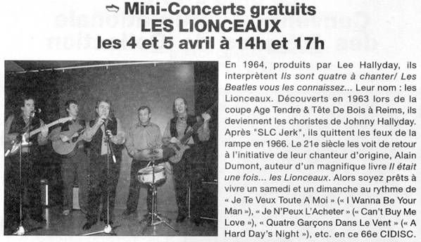 Dernier concert de l’année pour LES LIONCEAUX Revival A LA CANTOCHE à Pargny-les-Reims Le 11 décembre 2009 |
